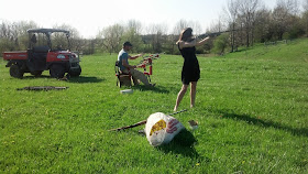 It's hard to imagine going to a shooting range to shoot at paper targets when you can be out in this gorgeous weather. We're lucky to have a friend with both the open land and all the gear. And while I'm thinking about it, why is a pigeon shooter called a trap? It makes no sense.